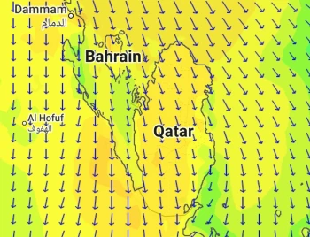 راصد ويذر - تشير التوقعات بعد أمر الله تعالى الى تأثر الخليج العربي باول كتلة هوائية معتدلة الحرارة ستساهم بتراجع الحرارة و الرطوبة السطحية الحارة و المرهقة ، الكتلة الهوائية تصاحبها هبات رياح شمالية نشطة مثيرة للغبار تتجاوز سرعة هباتها حاجز 40 - 48 كم / ساعة اعتباراً من عصر اليوم الإثنين و تستمر هبات الرياح الليلة و طوال نهار و مساء يوم غداً الثلاثاء مع اجواء مناسبة للمكشات البحري الساحلي .