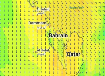 راصد ويذر - تشير التوقعات بعد أمر الله تعالى الى تأثر الخليج العربي باول كتلة هوائية معتدلة الحرارة ستساهم بطرد الرطوبة السطحية الحارة و المرهقة و ستساهم بانخفاض نسبي في درجات الحرارة العظمى و الصغرى لتصبح دون 38° مئوية نهاراً و ليلاً دون 27° مئوية