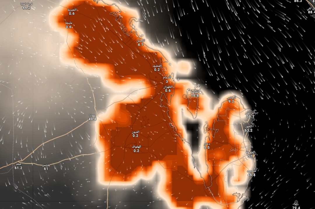 راصد ويذر - تشير التوقعات بعد أمر الله تعالى الى استمرار ارتفاع نسب الرطوبة السطحية العالية على سواحل الخليج العربي و المناطق الداخلية من الشرقية حيث يتوقع ان تتجاوز نسب الرطوبة 95% و تصل الى مرحلة التشبع في بعض مناطق هذه الليلة و فجر و صباح يوم غدا الاحد 28 سبتمبر مما سوف يؤدي الى تشكل الضباب الكثيف جداً في مدن واسعة من الشرقية حيث يشمل ظهور و تشكل الضباب الكثيف جداً