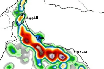 محتمل نشاط محدود لخلايا ممطرة على اجزاء من الحجر الشمالي بسلطنة عمان و لا يستبعد ظهور خلايا قد تكون ممطرة على المرتفعات الجبلية من الامارات .