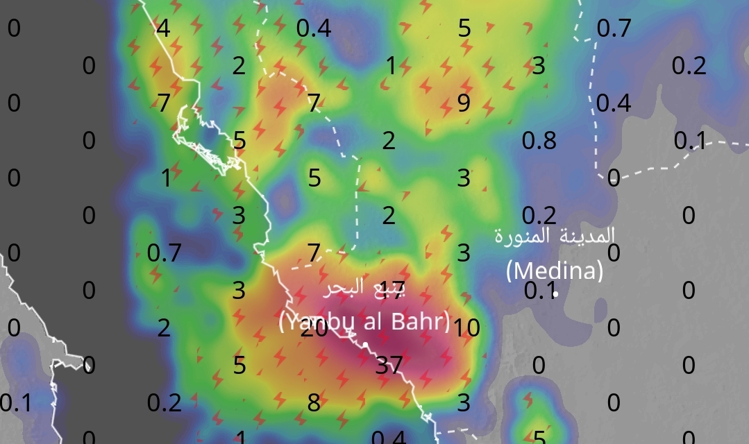 عرض المزيد أخبار محلية السعودية | سحابة كسير شبه استوائية محملة تؤثر بالامطار السيلية الغزيرة على املج بدر ينبع تمتد لتطال رابغ و شمال جدة و المدينة المنورة و حائل